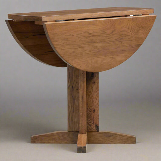 Braemar Rustic 4 Seater Round Drop Leaf / Folding Dining Table - Oak
