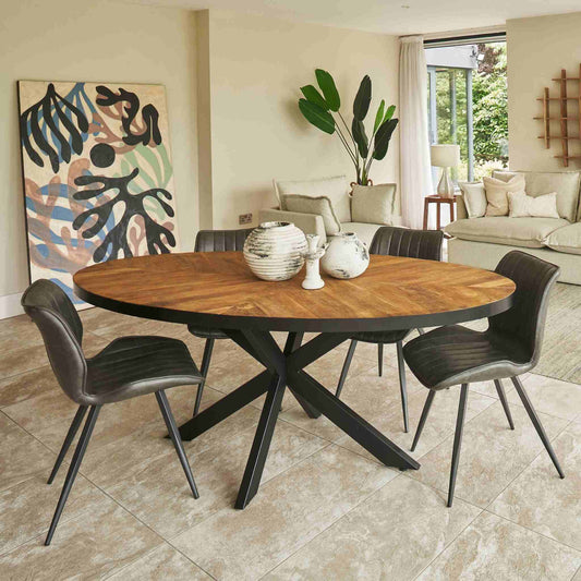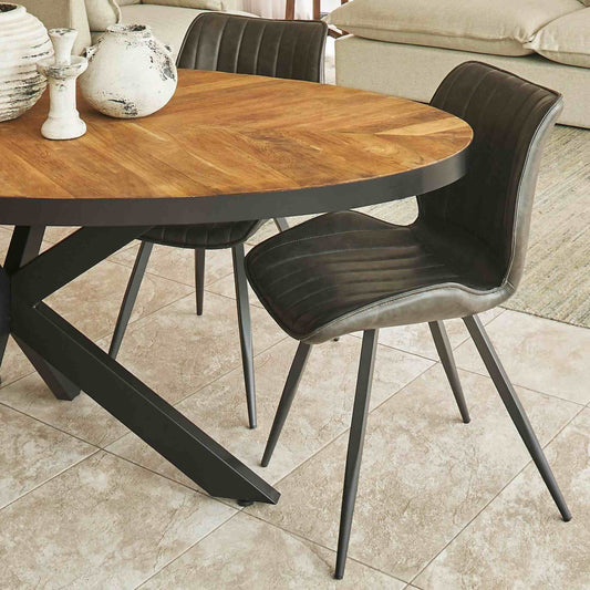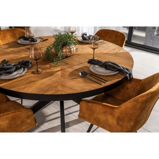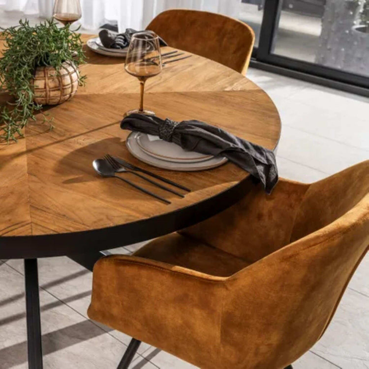 Cognac 4-6 Seater Round Dining Table - Teak, Steel